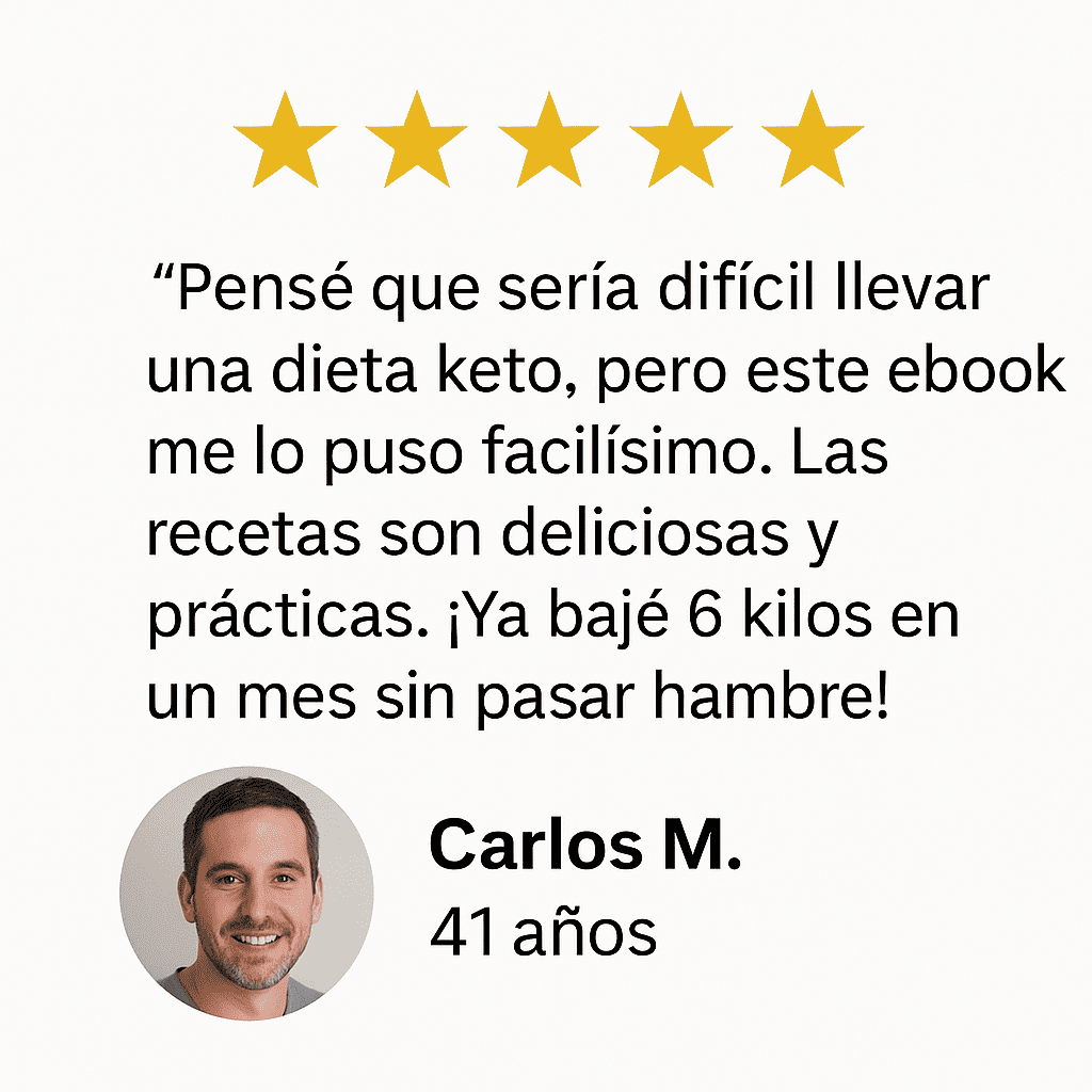 💬 “Nunca pensé que la dieta keto podía ser tan deliciosa. Ahora tengo opciones para toda la semana.” – Carolina M.